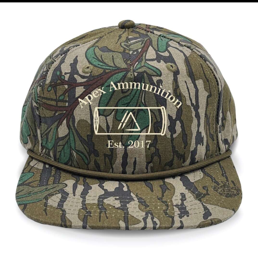 The APEX Mossy Oak Greenleaf Shotgun Shell Rope Hat brings together classic turkey-woods camouflage and one of the most recognizable symbols of the hunt—the shotshell. Built on the legendary Mossy Oak Greenleaf® pattern, this structured rope hat features the signature APEX shotshell logo with Est. 2017 branding, representing precision, heritage, and a commitment to doing things the right way in the field.